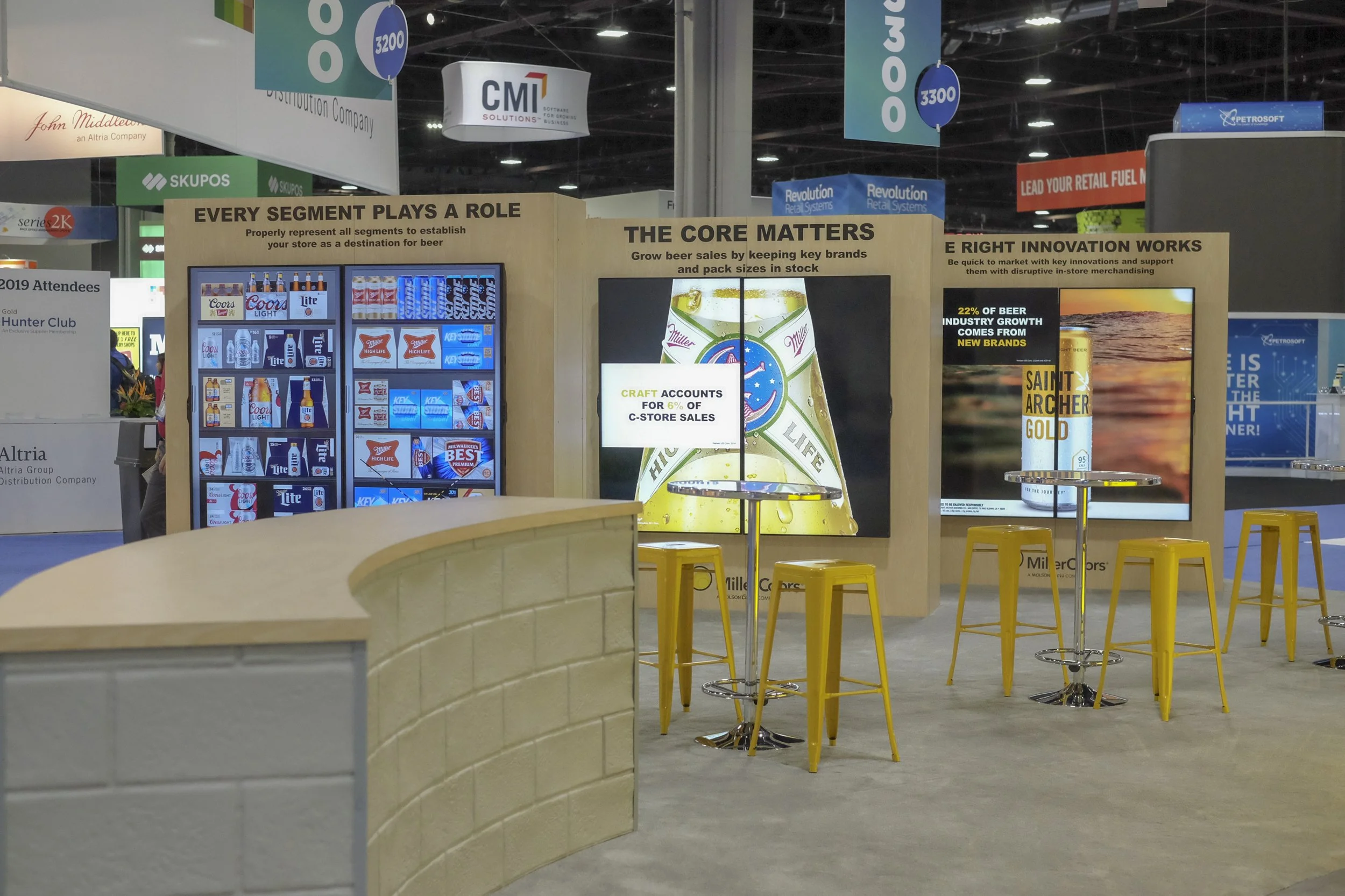The National Association of Convenience Stores brings together convenience and fuel retailing industry professionals for four days of learning, buying and selling, networking and fun. Each year, MillerCoors has a massive presence, we redesigned their expo space around their "Building with Beer" platform.