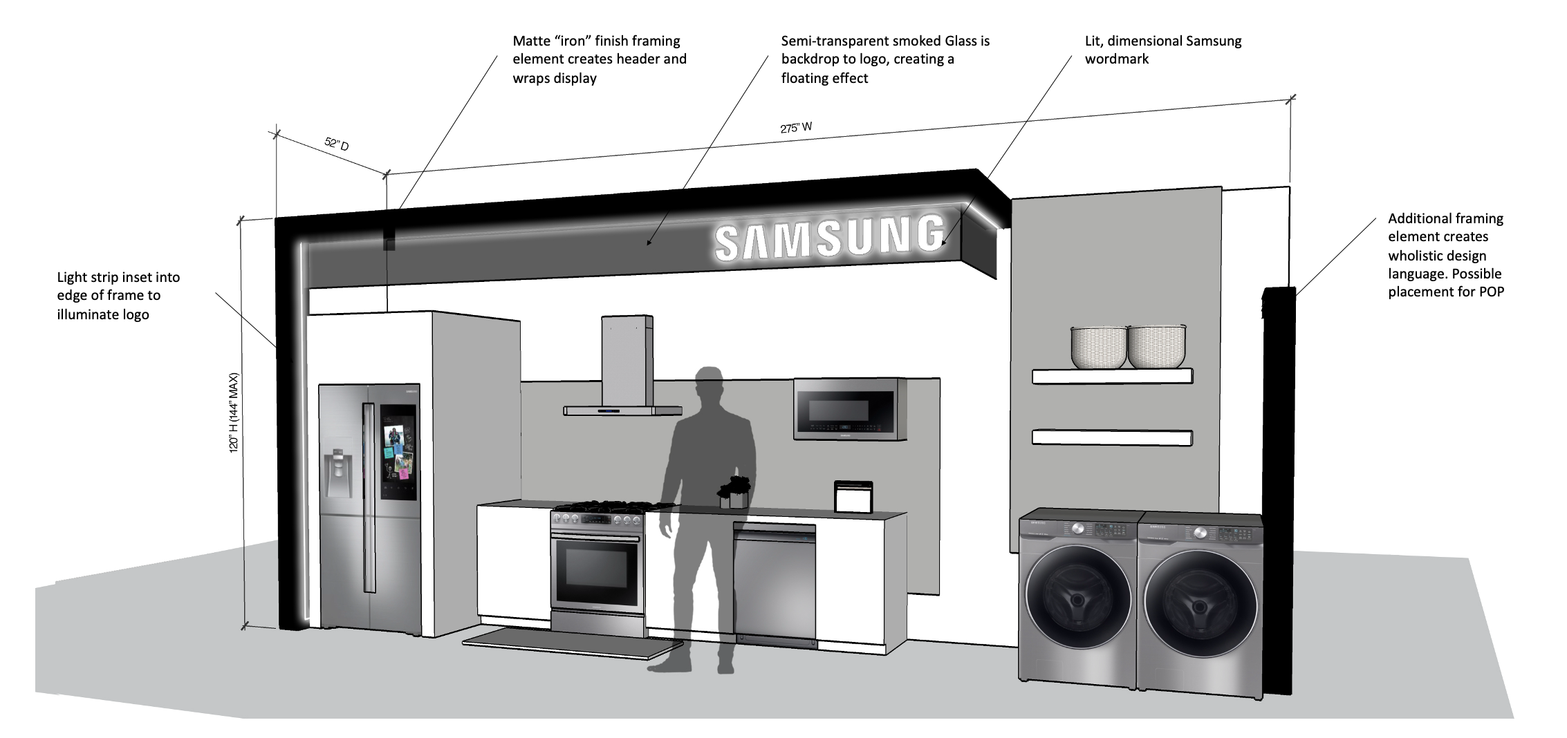 To best showcase the collection of Samsung’s Connected Living smart appliances, we designed a shop in shop concept for key retailers.